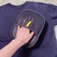 Beaucoup plus pratique qu’une brosse, franchement plus simple qu’une brosse classique. Je passe le gant sur le canapé et les vêtements, tout part facilement.
